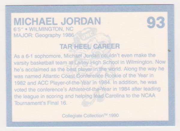 Michael Jordan 1990 North Carolina #93 College Card