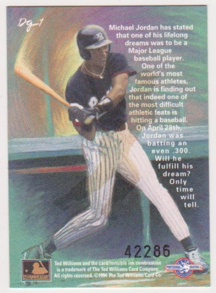 Michael Jordan Baseball Rookie - 1994 Ted Williams Company Gardiner Collection #DG-1