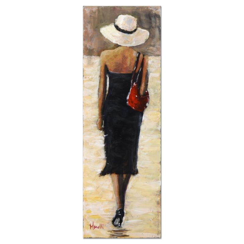 "Out on the Town" is an original oil painting on stretched canvas by Michael Maselli, hand signed by the artist. Includes Certificate of Authenticity. Measures approx. 12" x 36" (image).
