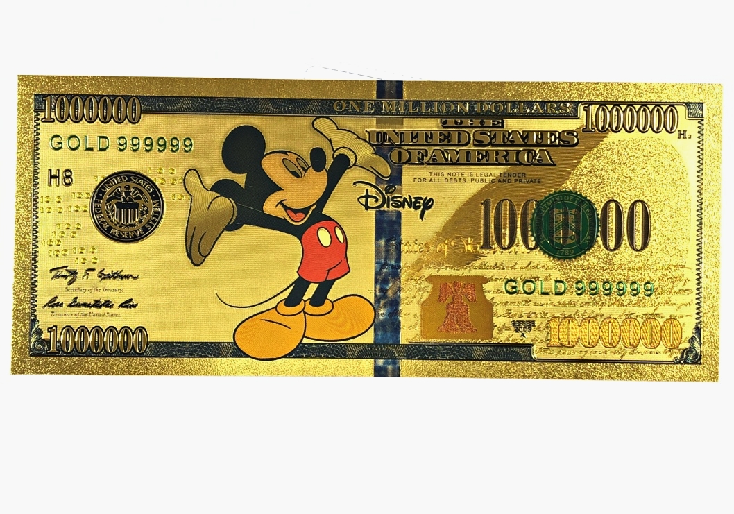Mickey Mouse Gold Foil Million Dollar Commemorative Banknote