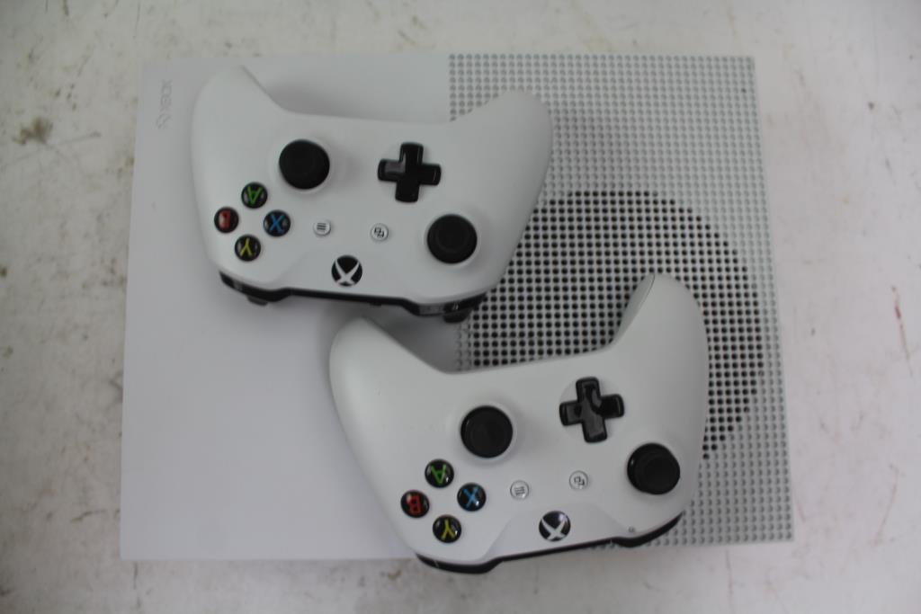 Get a great deal with this online auction presented by PropertyRoom.com on behalf of a law enforcement or public agency client. Model: 1681 HDD: 500GB Controllers: Two Xbox One Wireless Controllers Included [Missing Battery Compartment Covers] Video Out Cable: HDMI Cable Included Power Cord/Adapter: Included Accessories: None Included Games: None Included Physical Condition: Marks, Scratches, Scuffs, and Dents On Casing Testing Results: Tested, Powered On, Read Disc, and Responded to Controls; Restored to Factory Settings - No extended runtime testing is performed, item is being "Sold As Is"