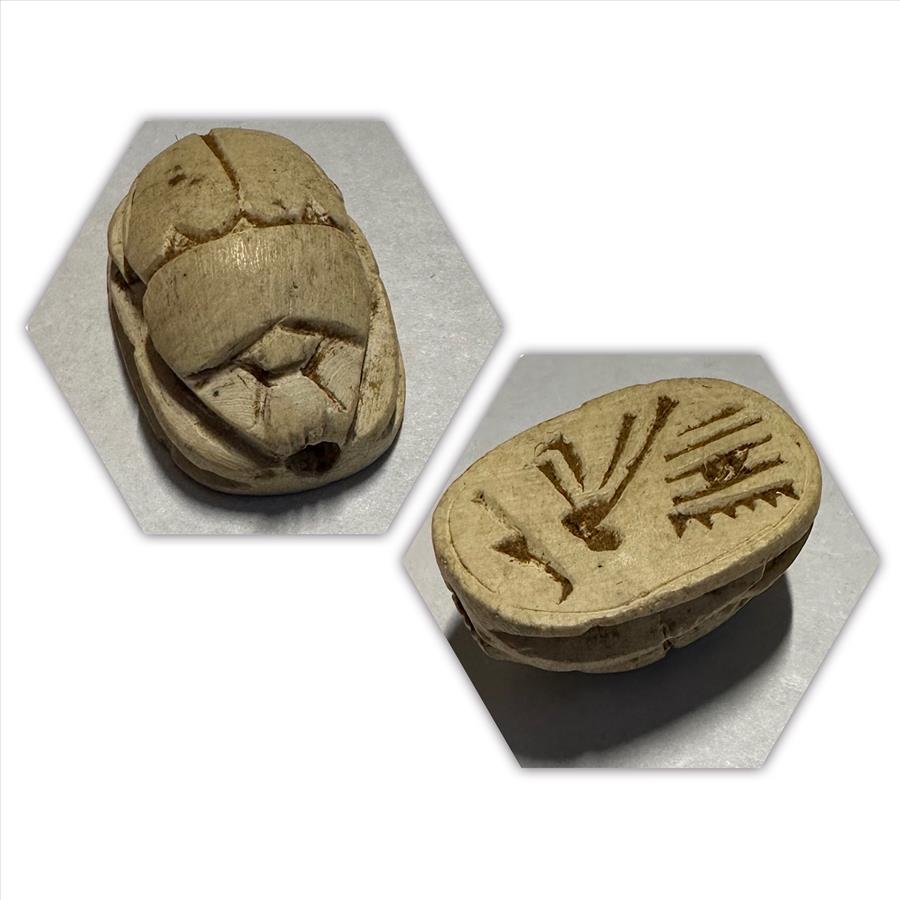 >Middle East Stone Hand Carved Scarab Blue Beetle