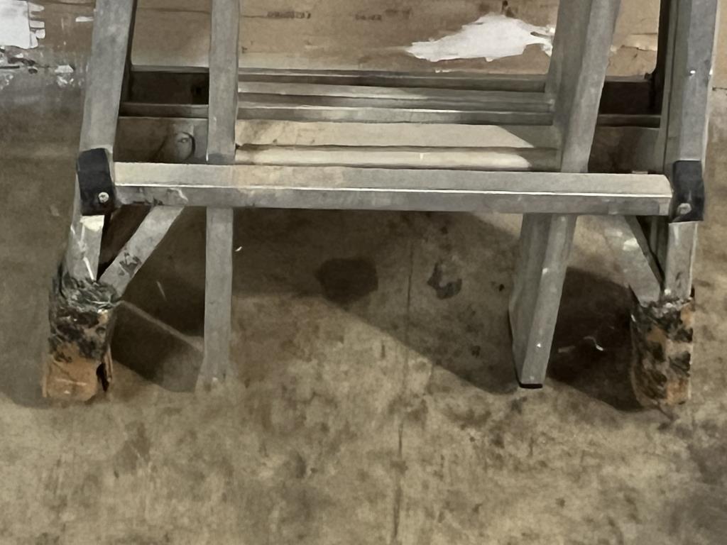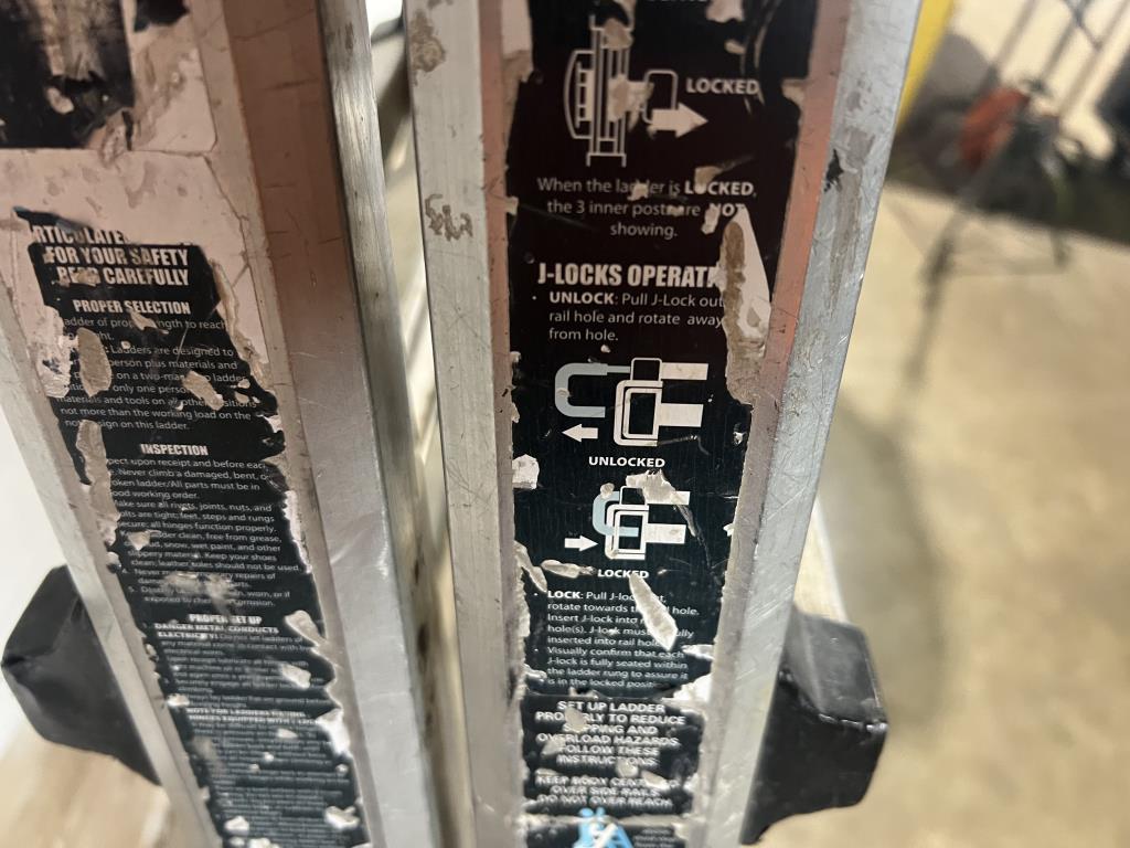 - Cosmetic Condition: fair, scratches, taped broken, foot, damage to safety pin on top of ladder