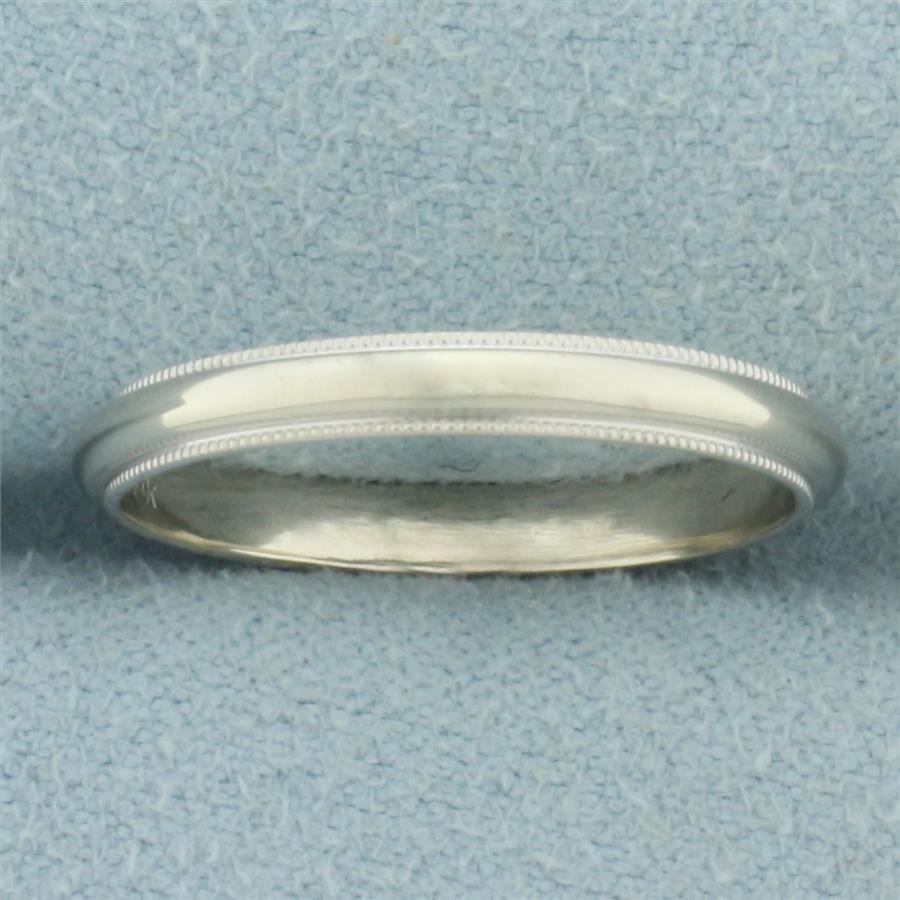 Milgrain Beaded Edge Wedding Ring Band in 14k White Gold