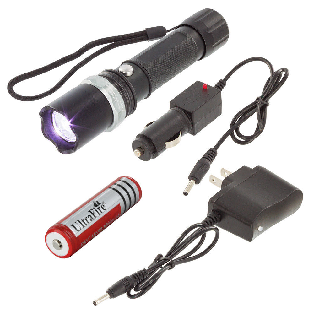Military Grade Tactical Police Swat Heavy Duty 3W LED Rechargeable Flashlight w Case