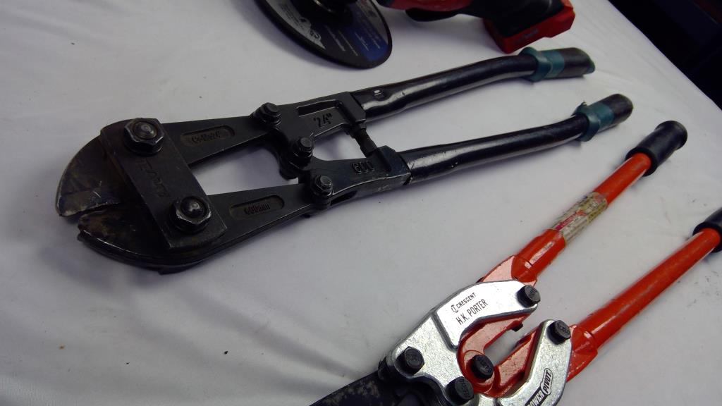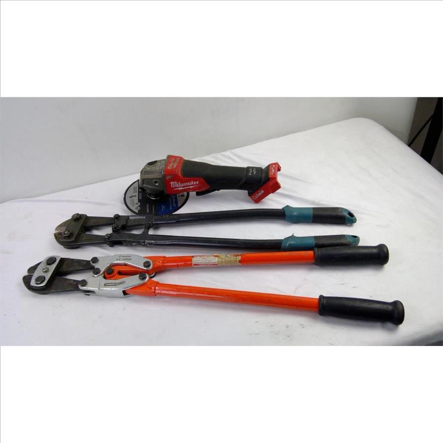 Milwaukee 4-1/2 - 5" Grinder, Crescent HK Porter, And Anvil Bolt Cutters, 3 Pieces