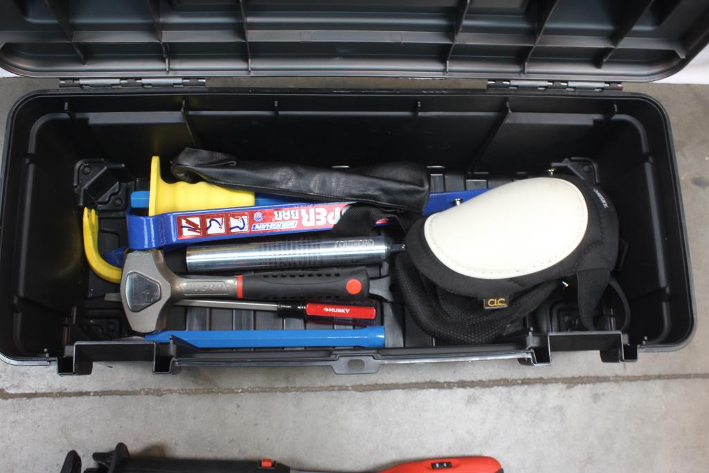 - All Items Come In Husky 26" Power Latch Tool Box; Meas.: 26" x 11.3" x 10.5"