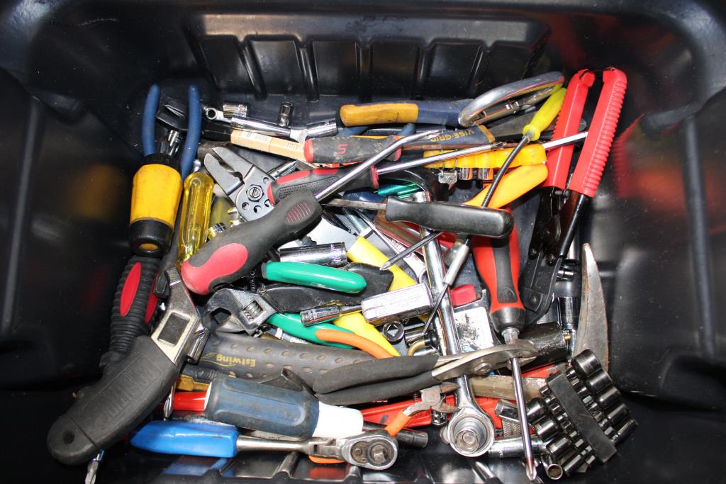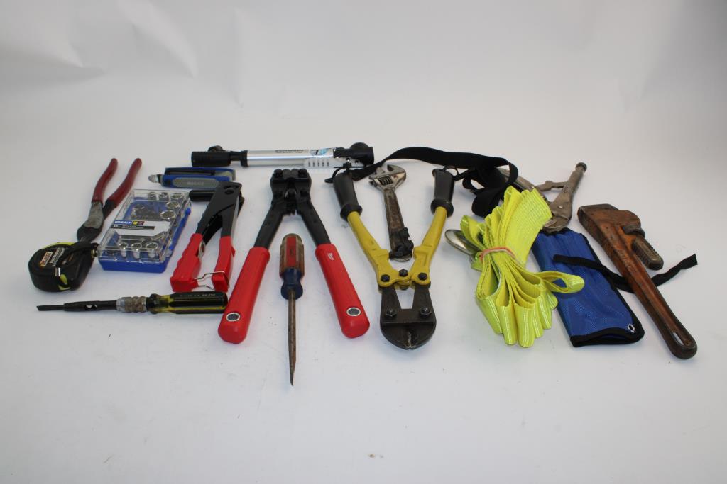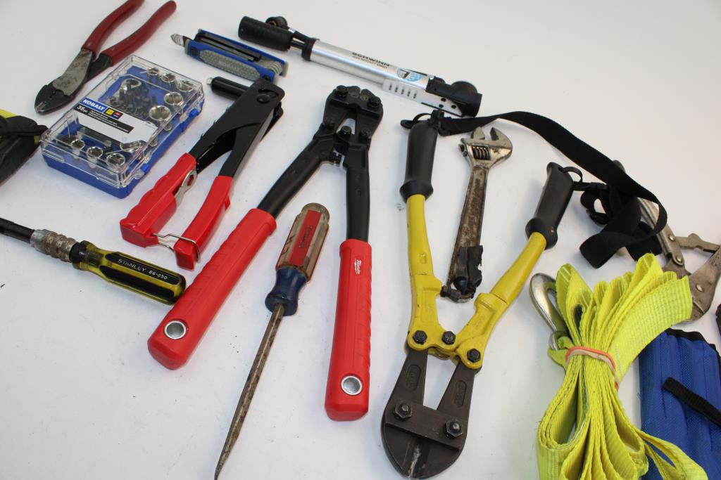 Get a great deal with this online auction presented by PropertyRoom.com on behalf of a law enforcement or public agency client. - milwaukee bolt cutter, kobalt 35pc right angle bit driver set, & more in rubbermaid actionpacker toolbox