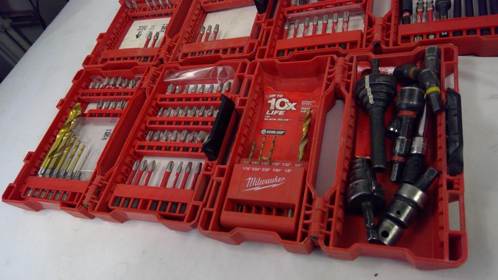 - Cosmetic Condition: Used, Fair to Poor; Items include socket/drill bit sets; Sets are incomplete and missing several pieces