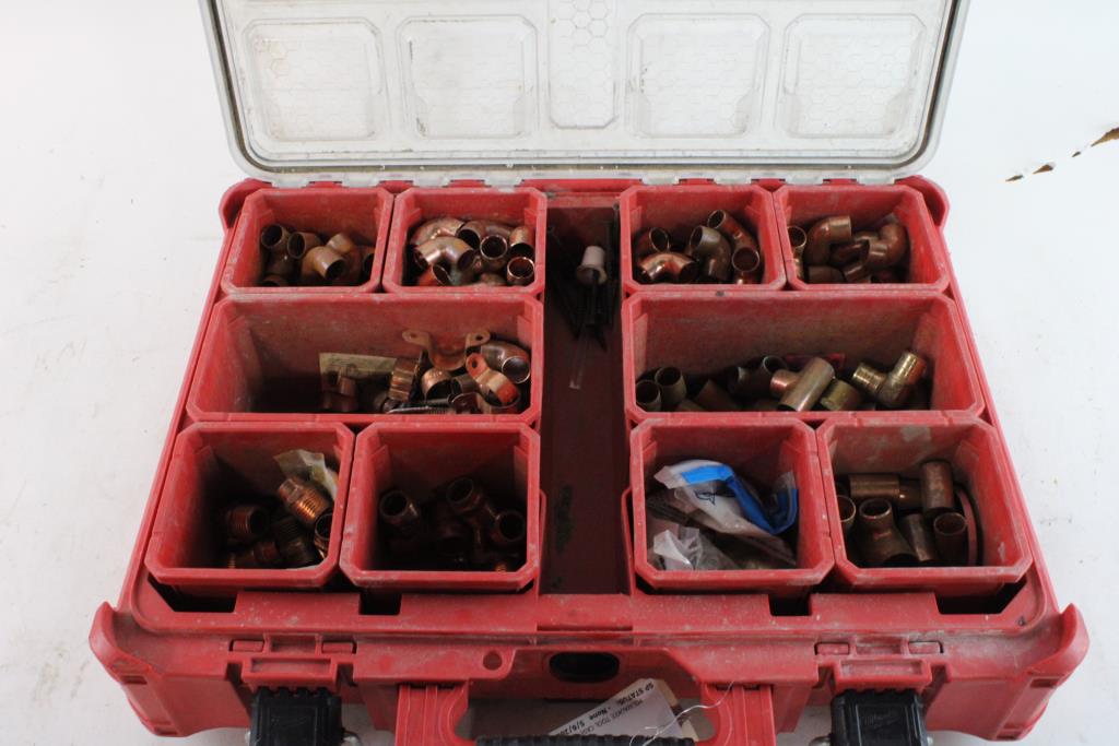 Milwaukee Organizer With Assorted Copper & Brass Fittings, 20+ Pieces