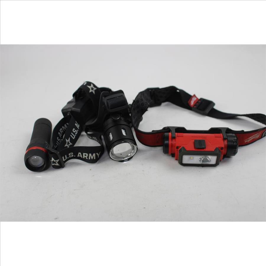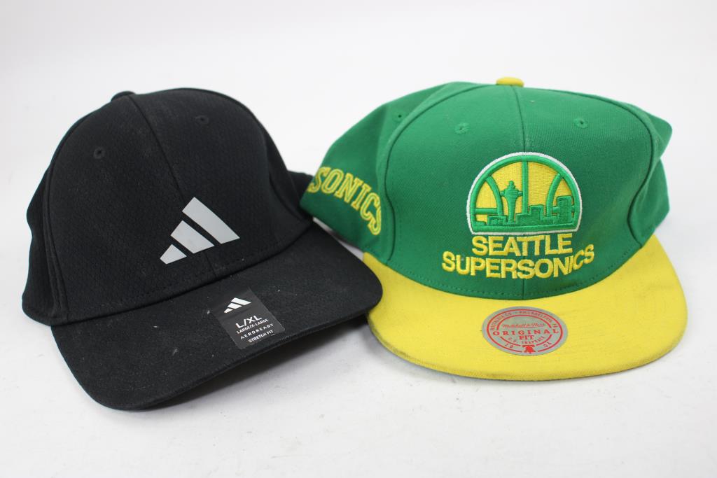 Milwaukee, US Army Headlamps, Adidas, Seattle Supersonics Hats, Flashlight, 5 Pieces