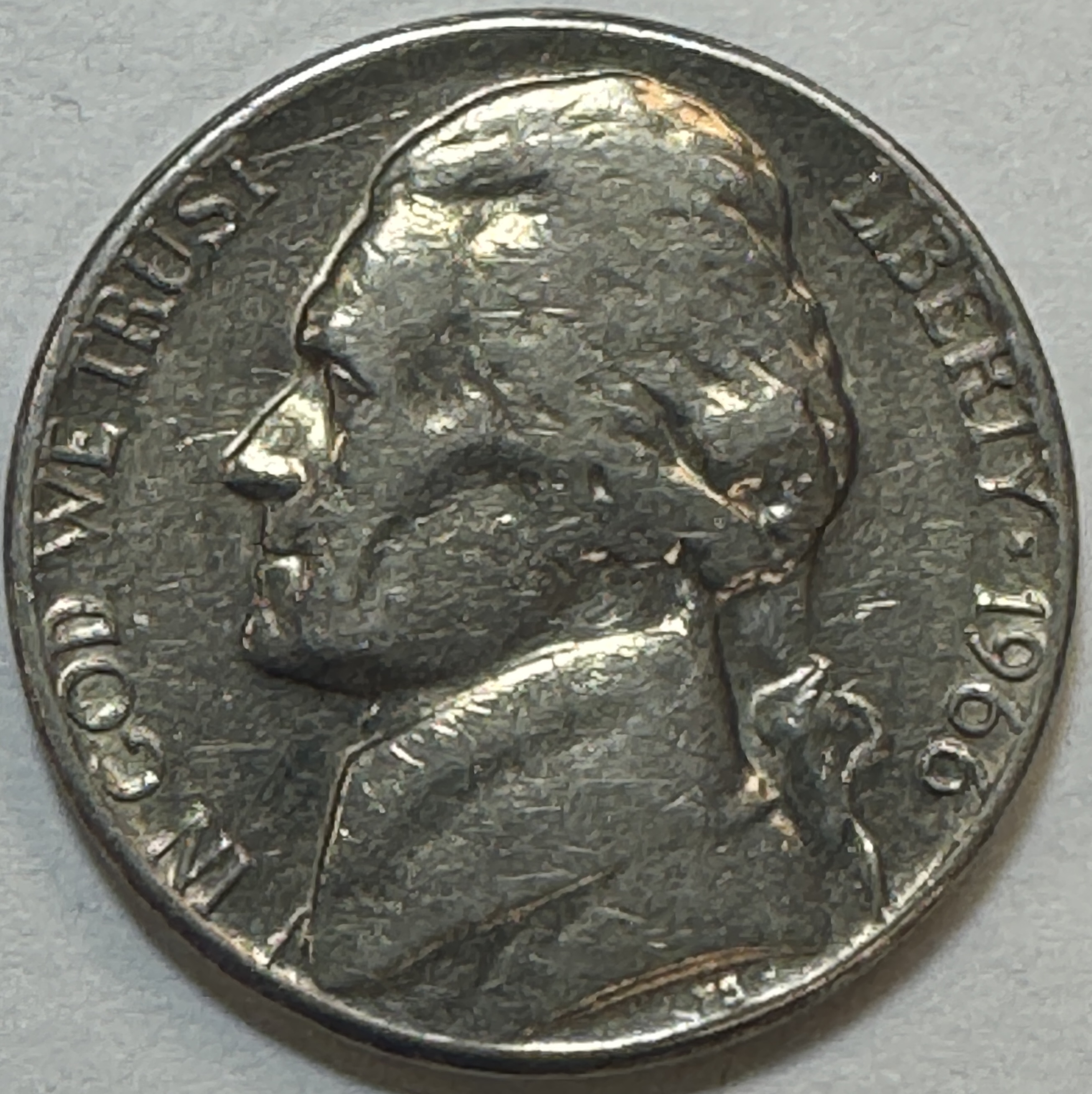 MINT ERROR 1960 Jefferson Nickel w/Reverse Rim Cud Error