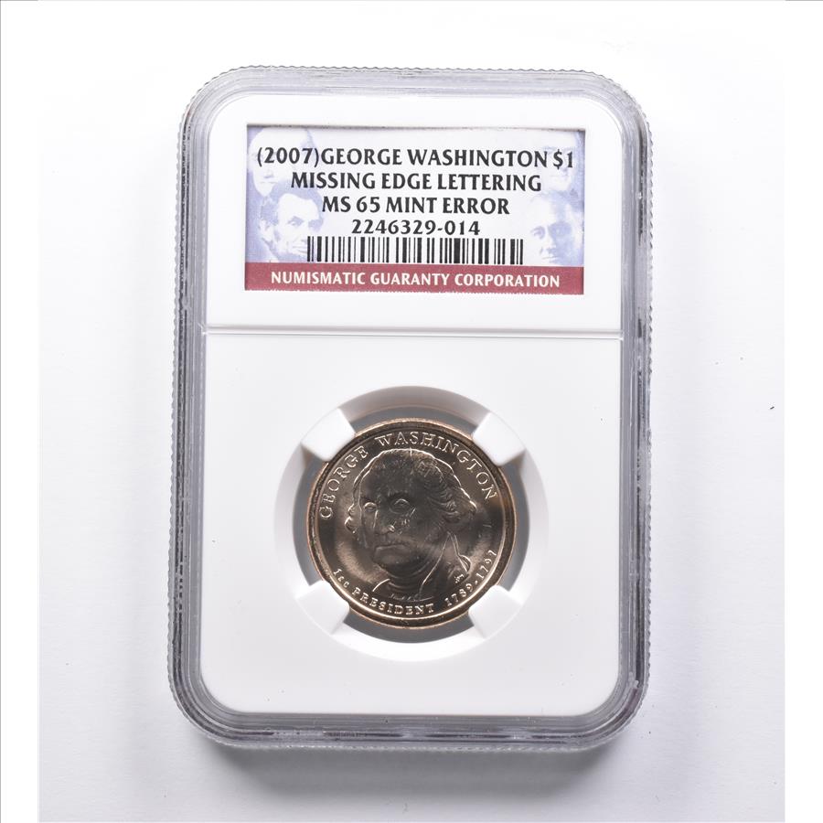 Mint Error MS65 (2007) George Washington Dollar Missing Edge Lettering NGC