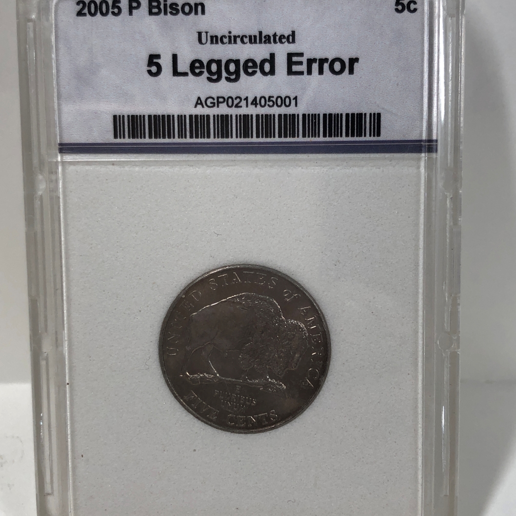 MINT ERROR*2005-P 5 Legged Error Bison Nickel*Graded Uncirculated by AGP