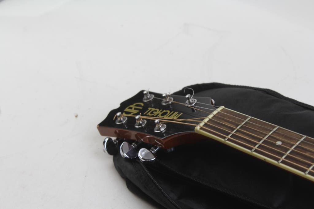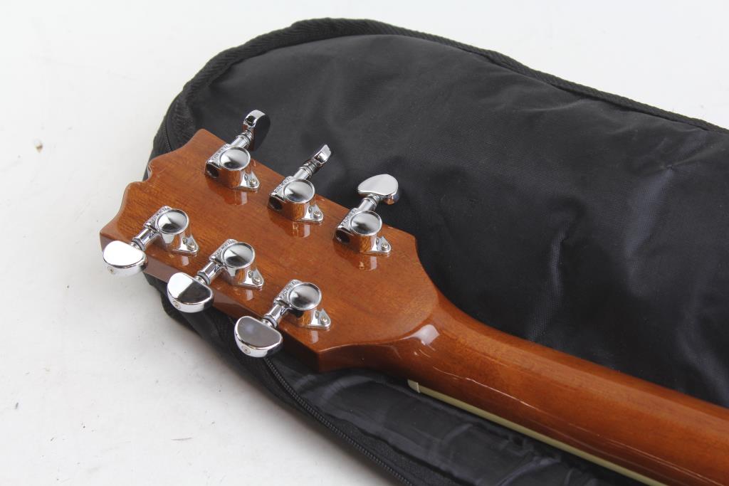 Get a great deal with this online auction for an acoustic guitar presented by Property Room on behalf of a law enforcement or public agency client. - Model: Unable to read. Inner label has been peeled off.
