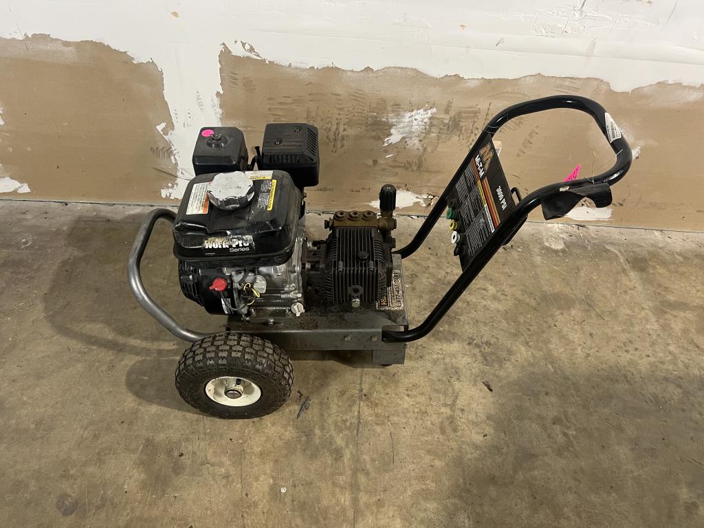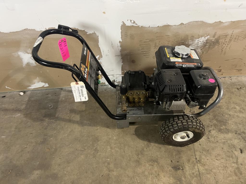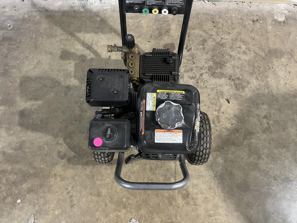 - Item info: gas powered, pull cord start, 3000 Psi, 4 spray tips, dual wheels, motor- Honda- GX 200, handle for mobility , kill switch