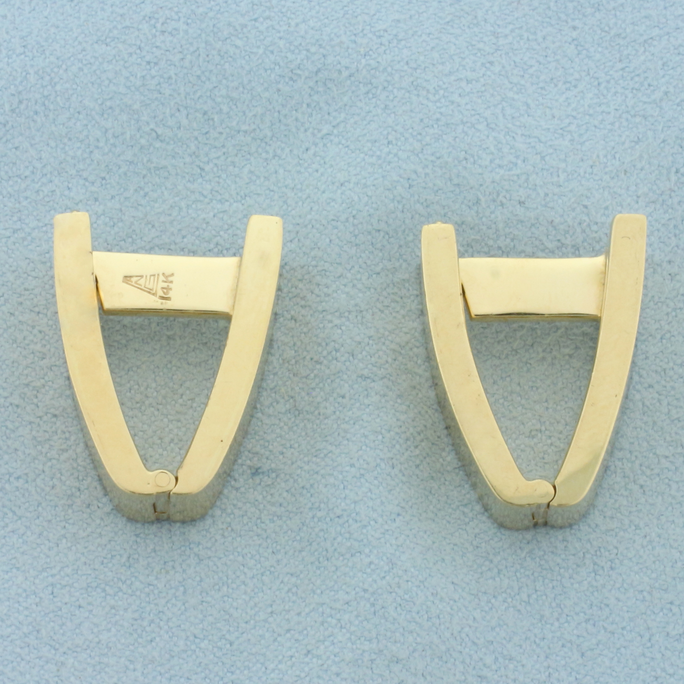 In 14k yellow gold. 7/8 inch long and 3/8 inch wide. Hinged locking closure. 15.0g.