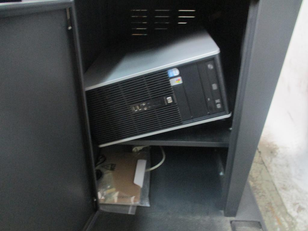- Accessories: 120v, 15" screen display, finger print screen, directional arrows up, down, left, right. Ok button, 2 foot pedals, pull out keyboard tray w/mouse.