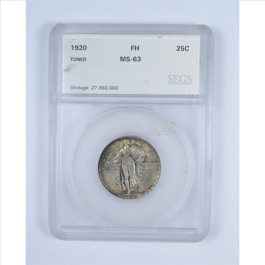 MS63 1920 Standing Liberty Quarter - FH - Toned - Graded by SEGS