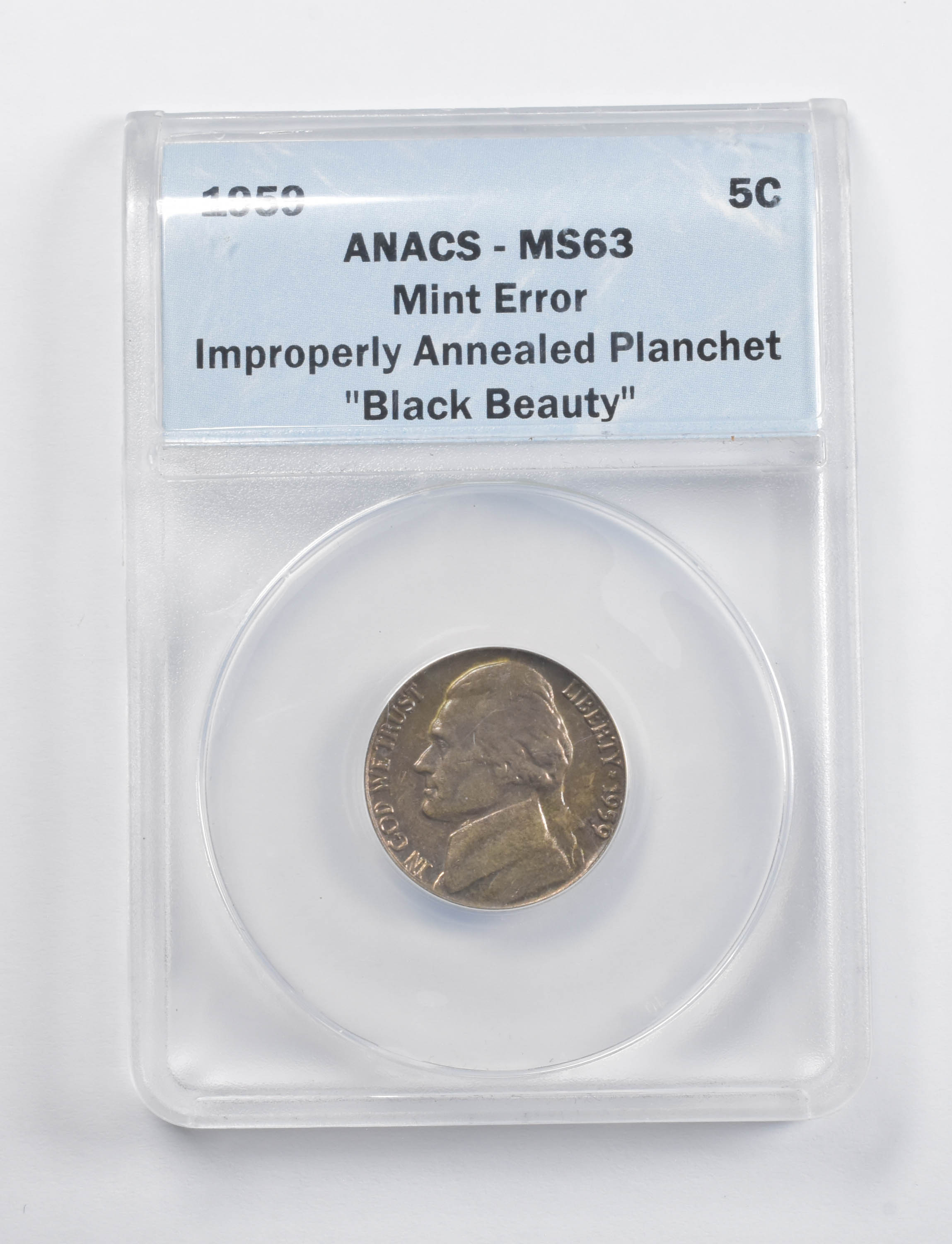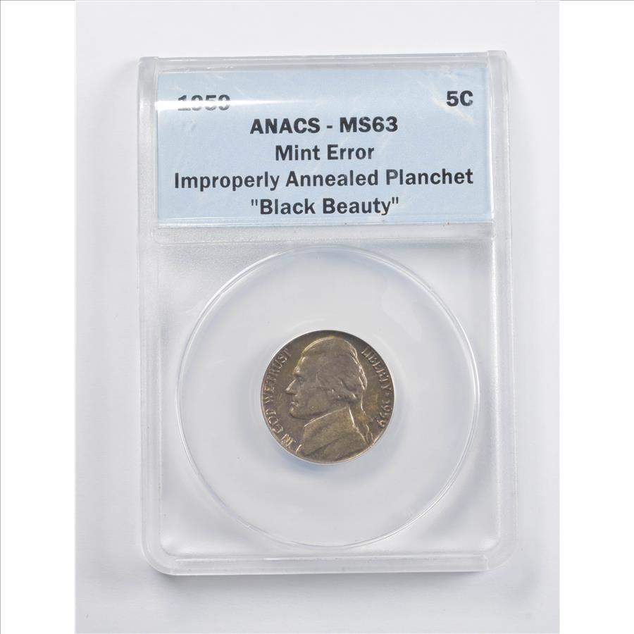 MS63 1959 Jefferson Nickel Mint Error Improperly Annealed Planchet "Black Beauty" ANACS