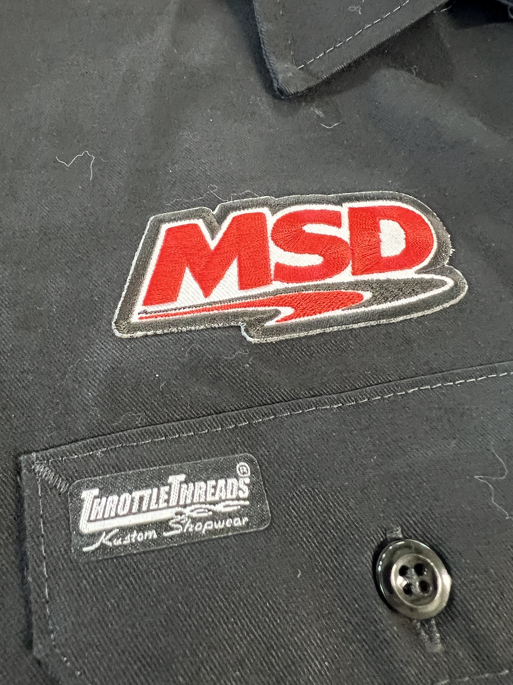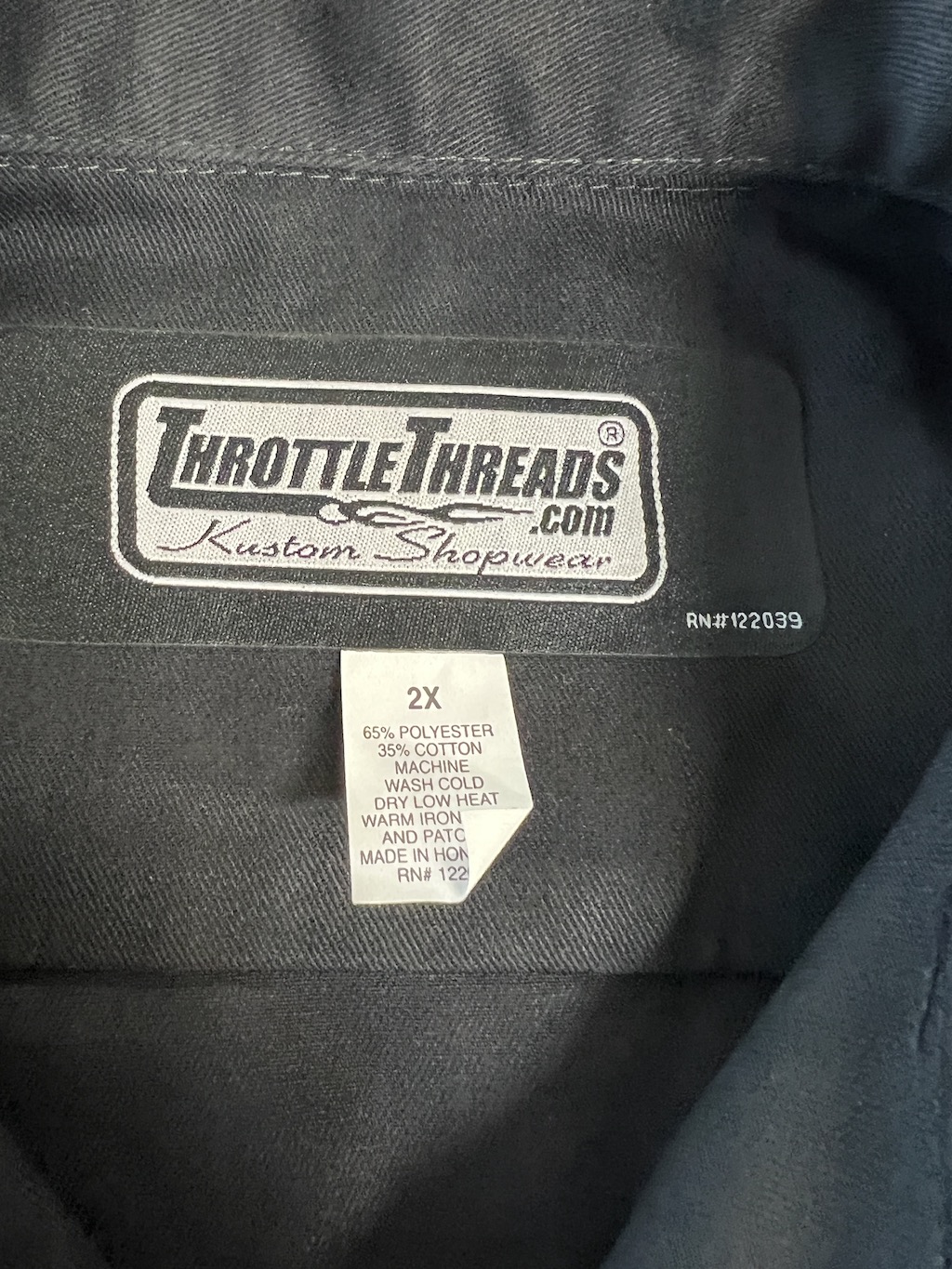 The first shirt is a 2X Throttle Thread PIT crew factory MSD shirt - button up