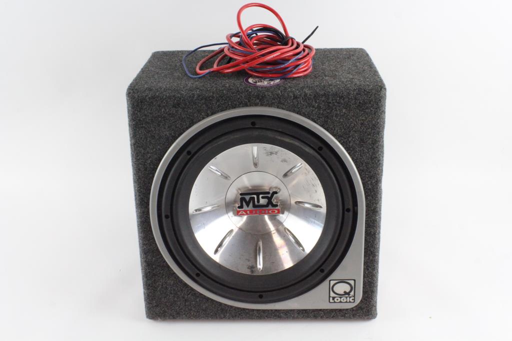 Get a great deal with this online auction for a subwoofer and amplifier presented by Property Room on behalf of a law enforcement or public agency client. - MTX Audio 12" subwoofer, in Q Logic enclosure, 16" x 16" x 16"