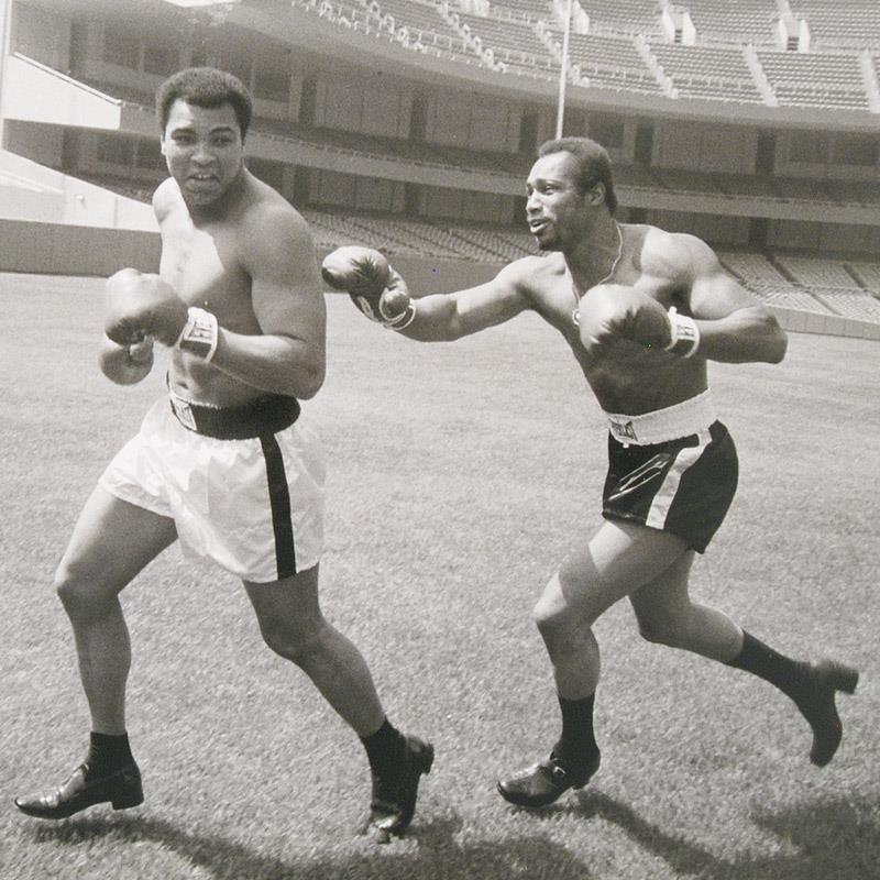 Own a piece of sports history with this photo of Muhammad Ali and Ken Norton (1943-2013), one of Ali's famed opponents. Taken at the peak of Ali's success as one of the greatest heavyweight championship boxers of all time, this photo is sure to complement any sports memorabilia collection. This is a licensed photograph on paper. Measures approx. 40" x 30" (no border).