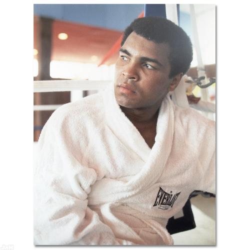 Own a piece of sports history with this Muhammad Ali photo. Taken at the peak of his success as one of the greatest heavyweight championship boxers of all time, this photo is sure to complement any sports memorabilia collection. This is a licensed photograph on Kodak Professional Endura paper. Measures approx. 30" x 40" (no border).