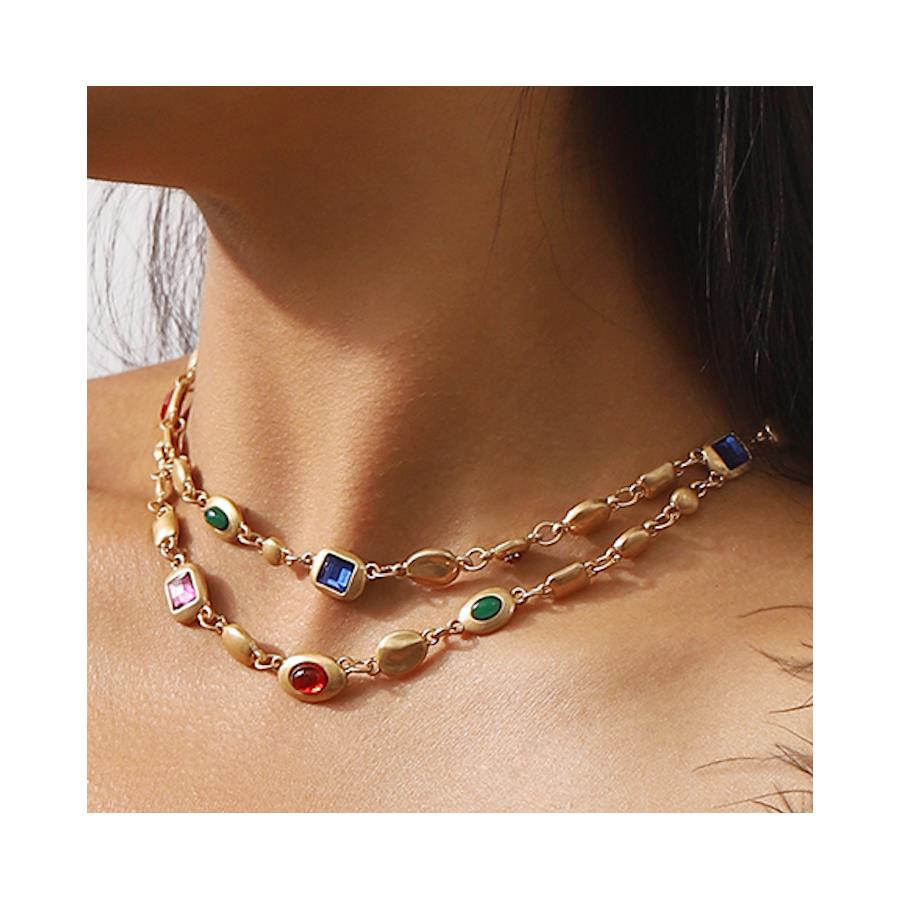 Multi-Gem & 18k Yelllow Gold Overlay Layering Necklace