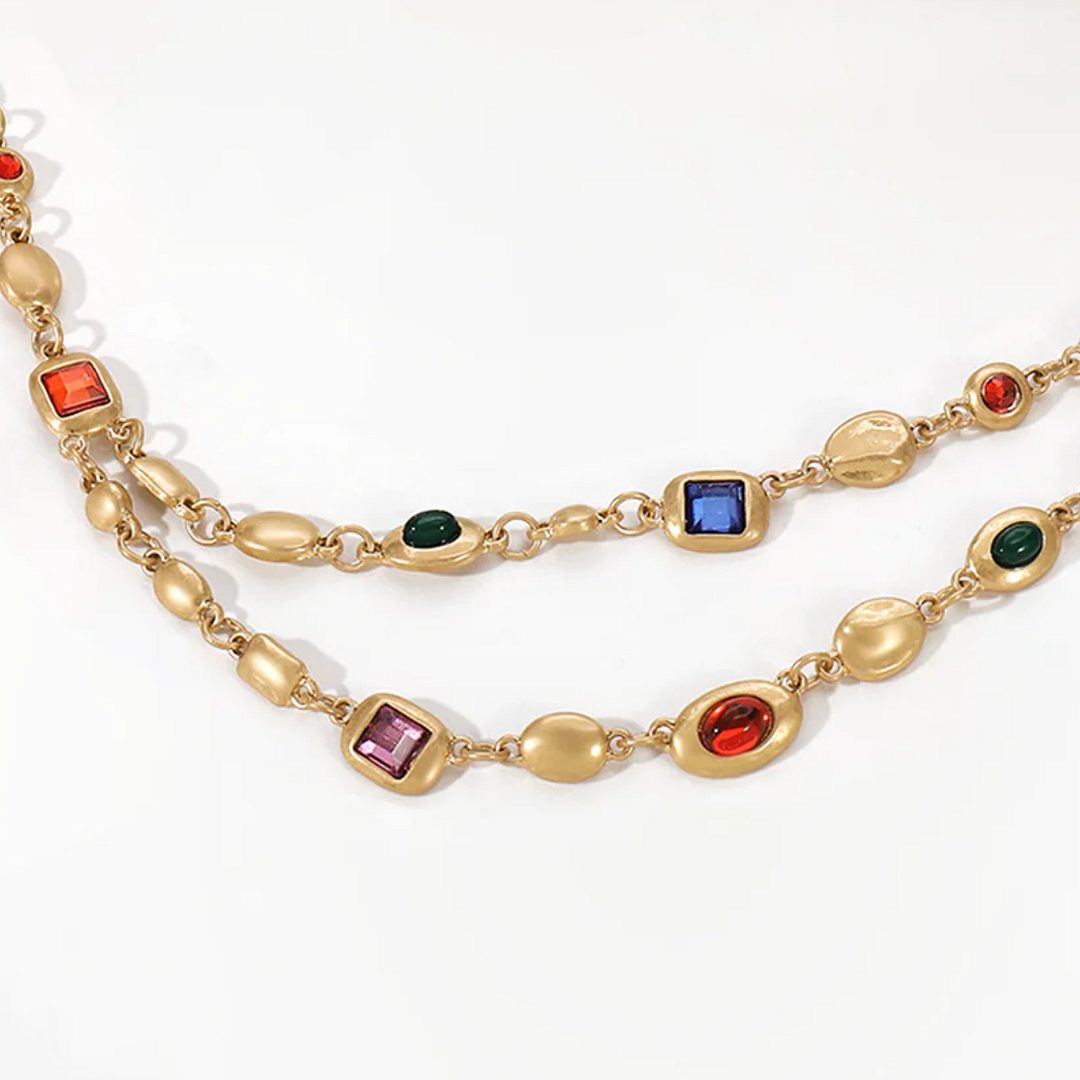 Multi-Gem & 18k Yelllow Gold Overlay Layering Necklace