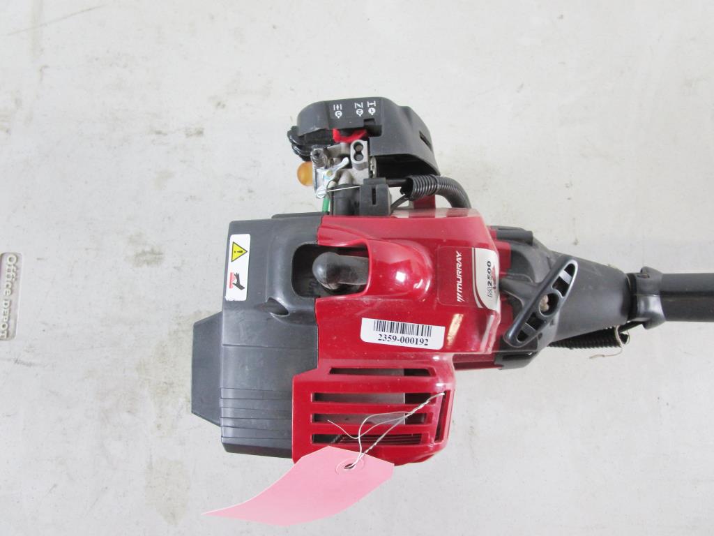 Get a great deal with this online auction presented by PropertyRoom.com on behalf of a law enforcement or public agency client. Brand: Murray Model: M2500 Color: Red and Blue Gas powered, pull cord start, curve bar adjustable, line guard, Trigger / Throttle, Handle for stability - Measurements: 59"Long, Kill Switch