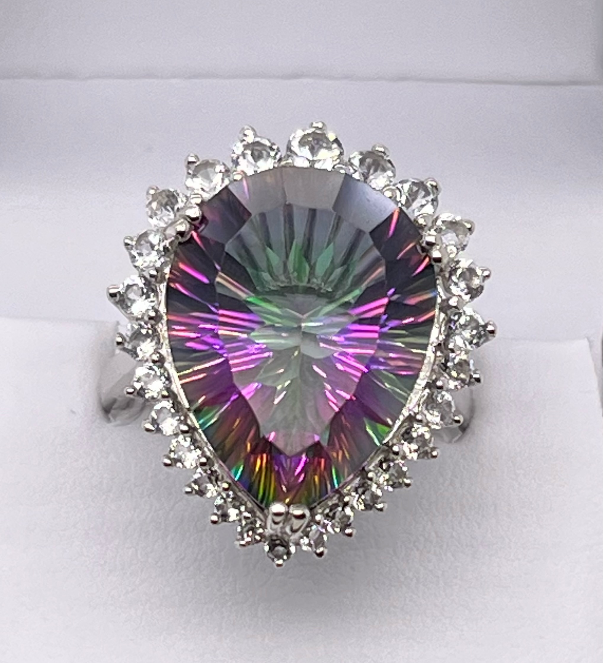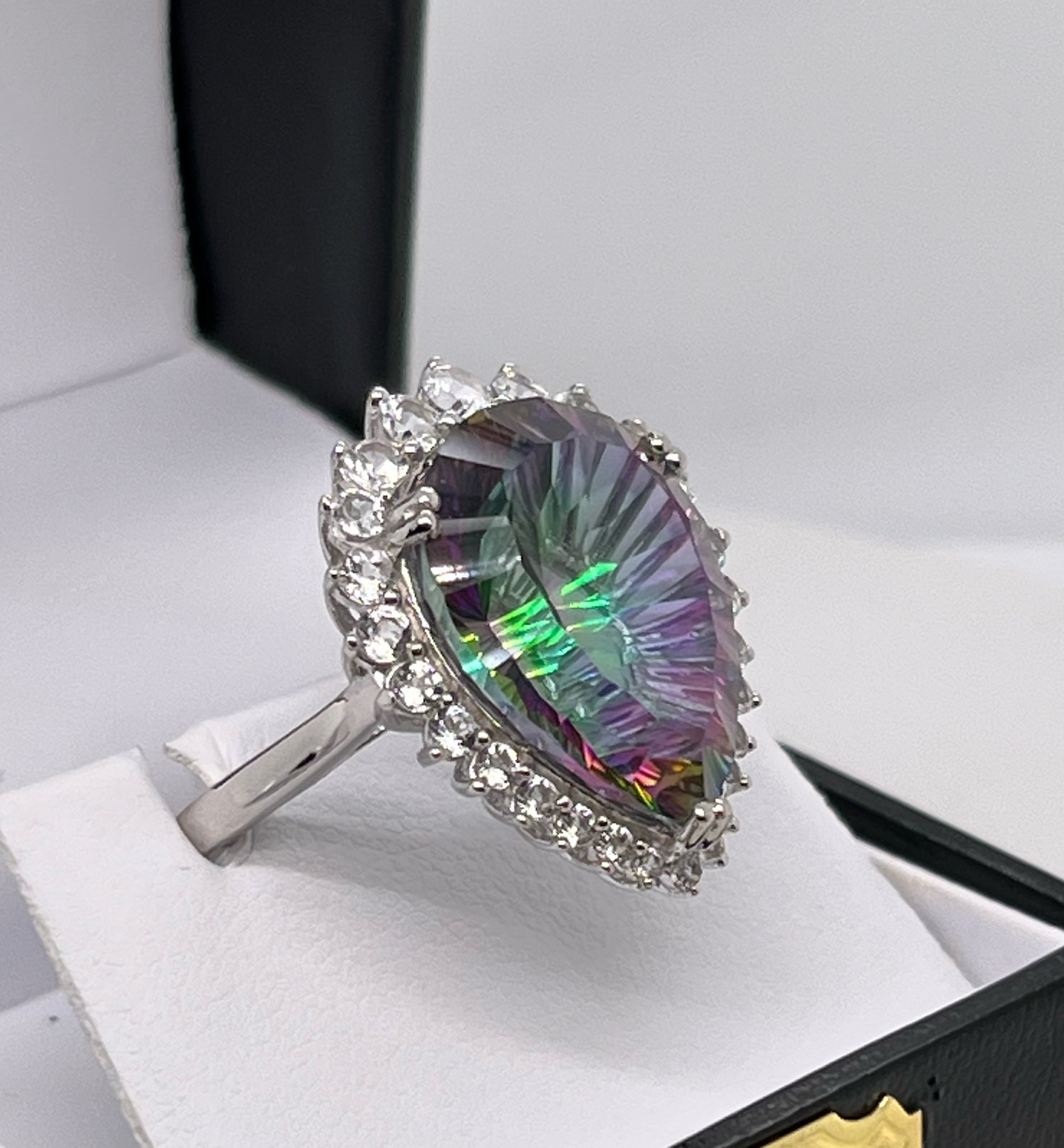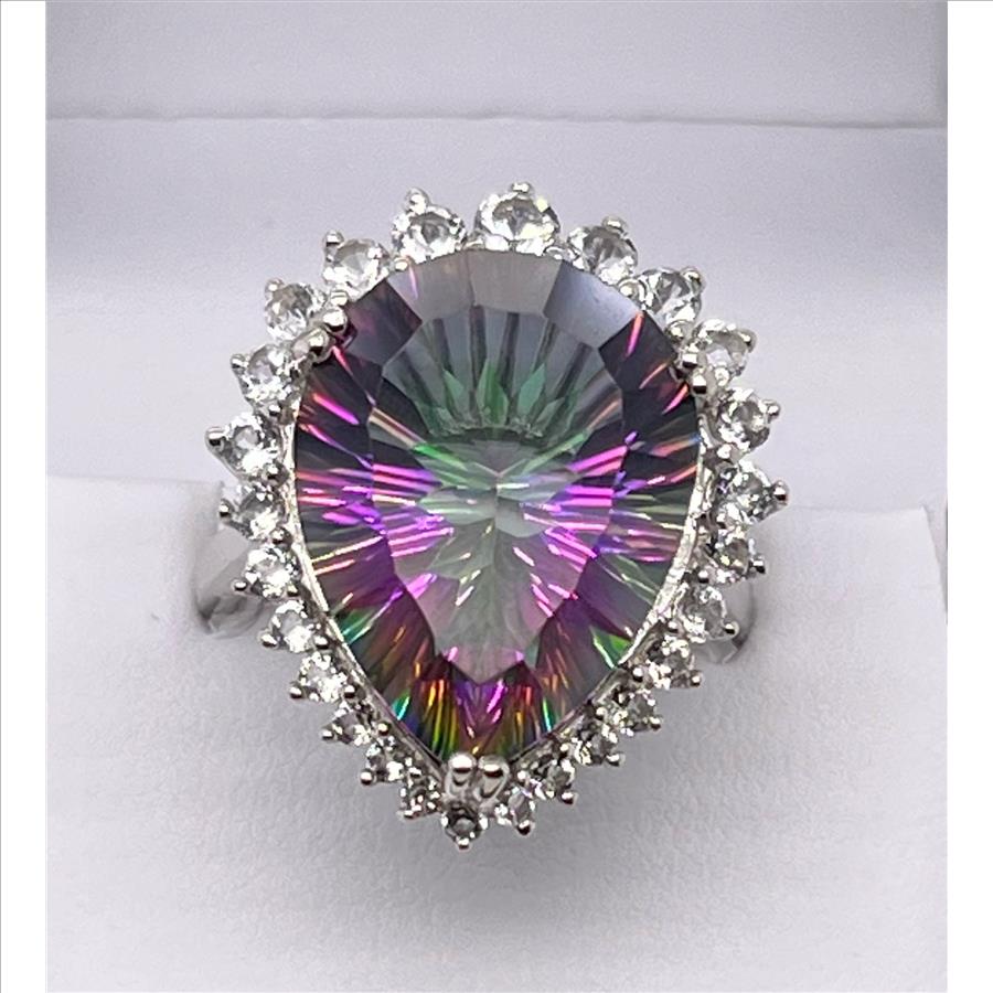 BEAUTIFUL MYSTIC TOPAZ AND WHITE SAPPHIRE RING SET IN STERLING SILVER