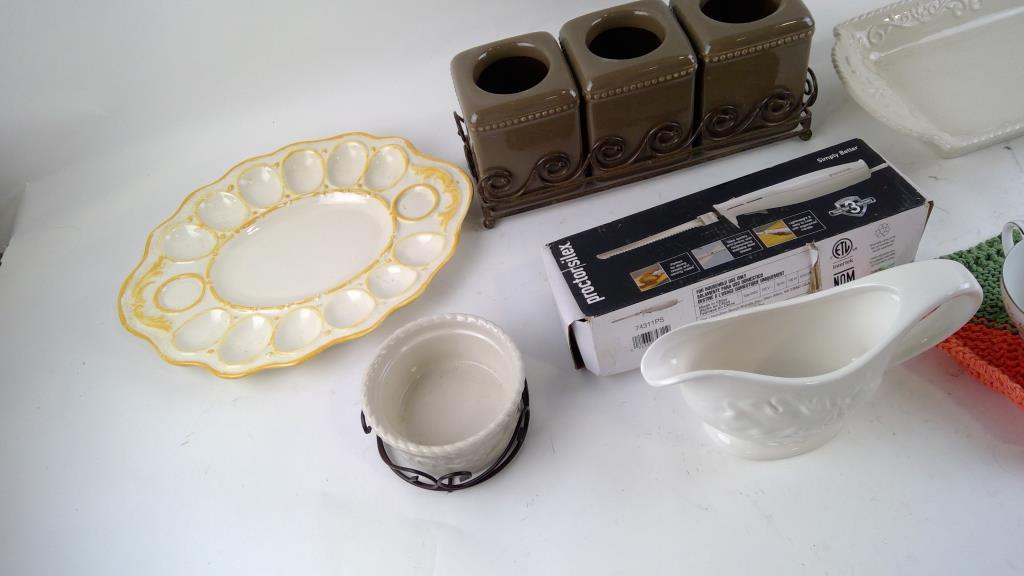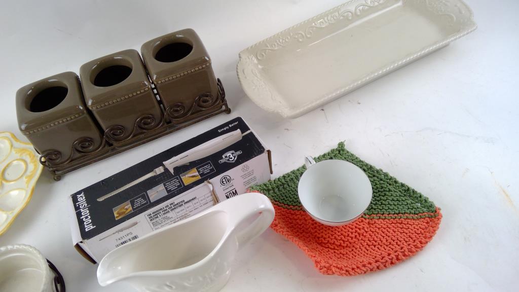 Get a great deal with this online auction presented by PropertyRoom.com on behalf of a law enforcement or public agency client. - Napkin Holder, Bread cutter, Plates, bowl and more