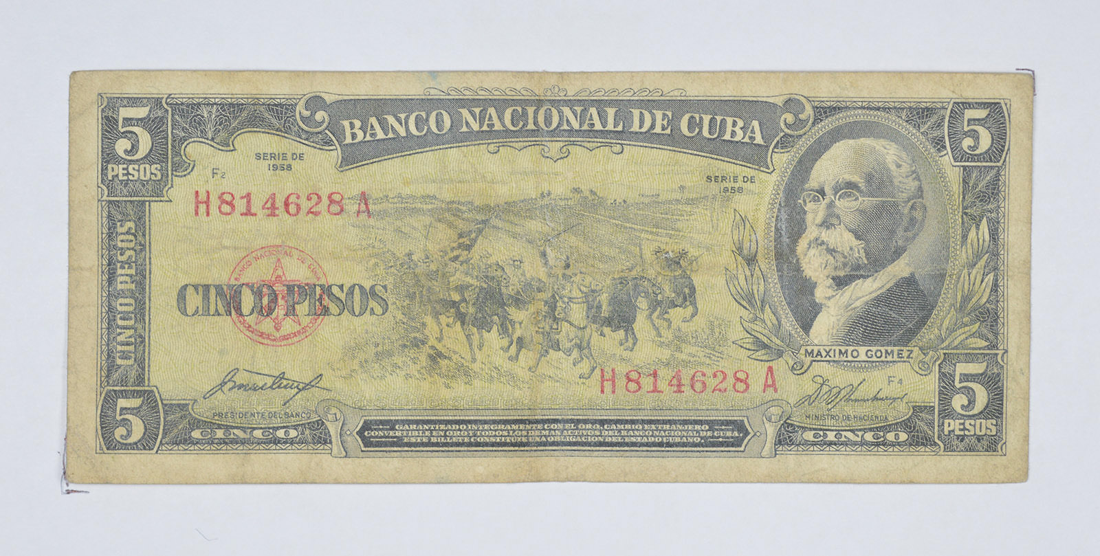National Bank of Cuba 5 Pesos Note - Maximo Gomez - Series of 1958!