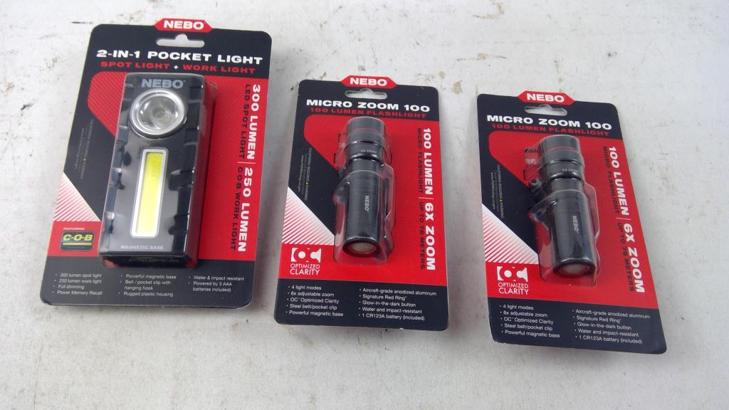 Nebo Micro Zoom 100 Flashlights And 2-in-1 Pocket Light, 3 Pieces