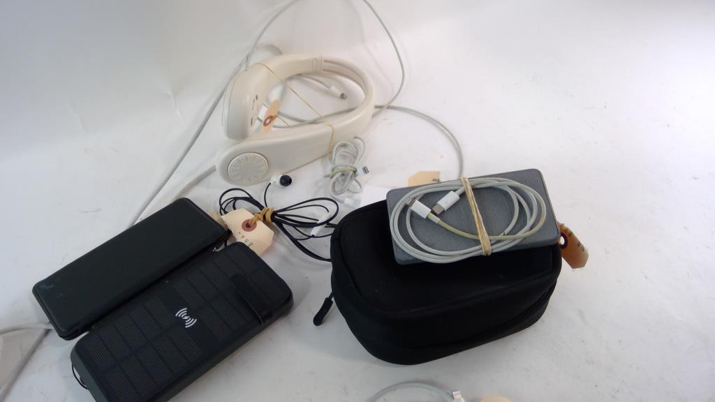 - Neck fan, Beats carrying case, earbuds, portable charger, Charging cords, Charging blocks and more