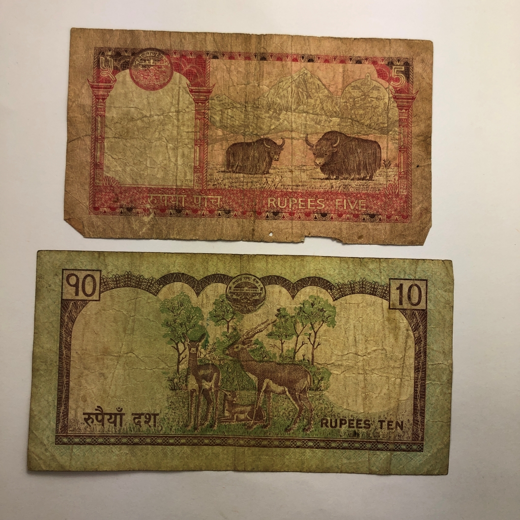 Nepal 5 & 10 Rupee Banknotes in protective sleeve