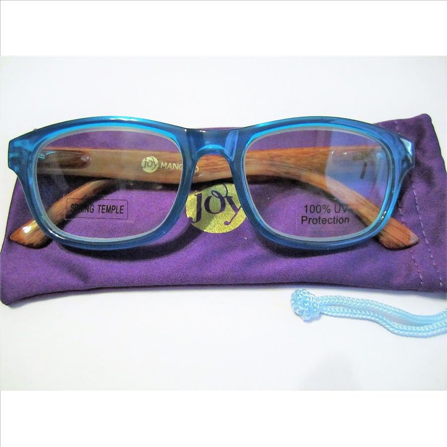 New Joy Mangano Reading Glasses Blue With Wood Style Arms +3.5 Prescription