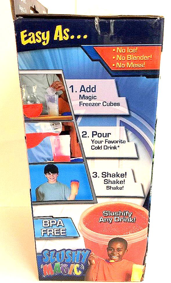 The magic is the snowflake science!  Slushy  Magic Freezer cubes get super cold in the freezer!  Just toss 'em into the shaker cup, add any cold drink, then shake it up!