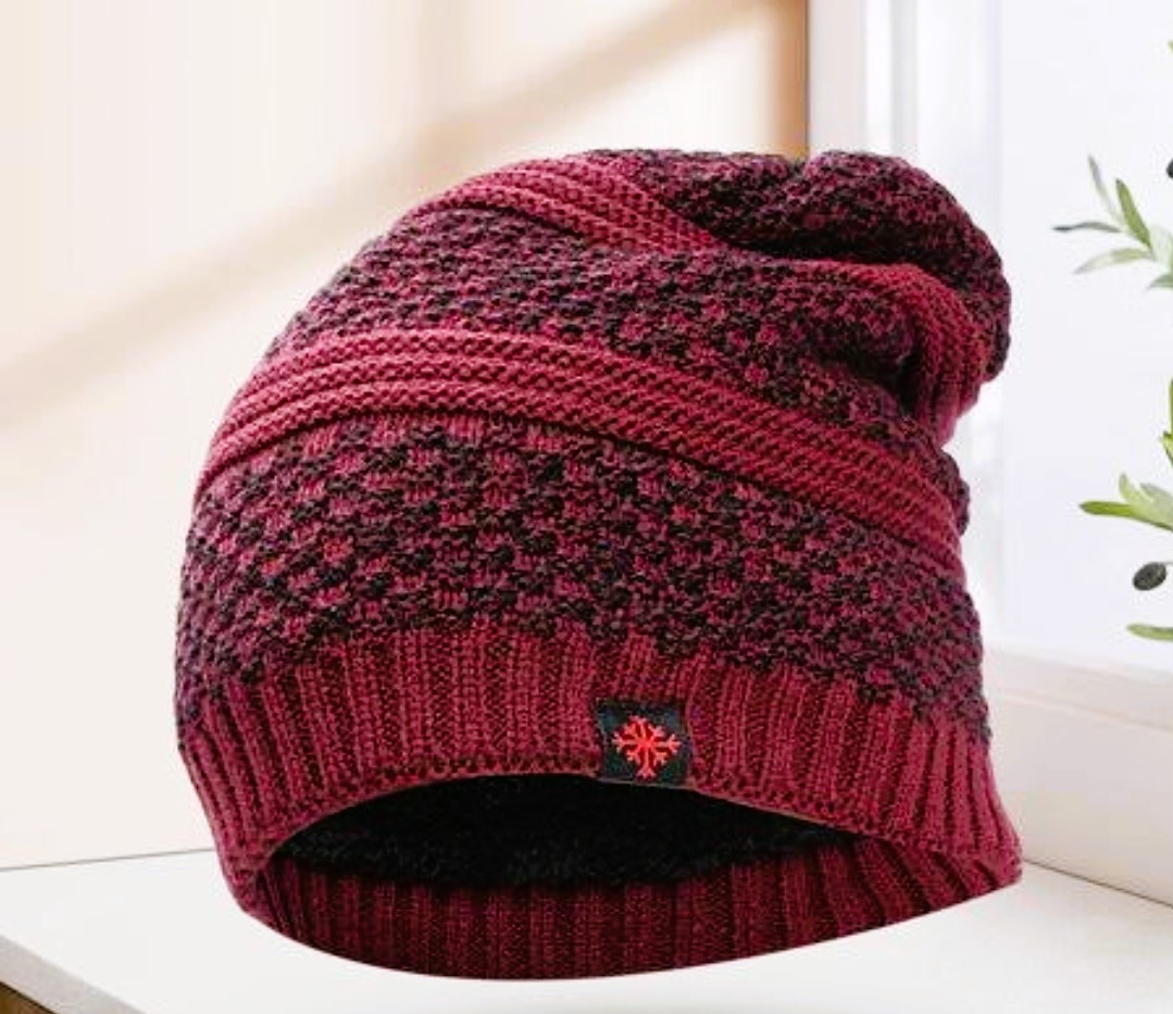 New Unisex Red Fleece Lined Winter Beanie Knit Hat