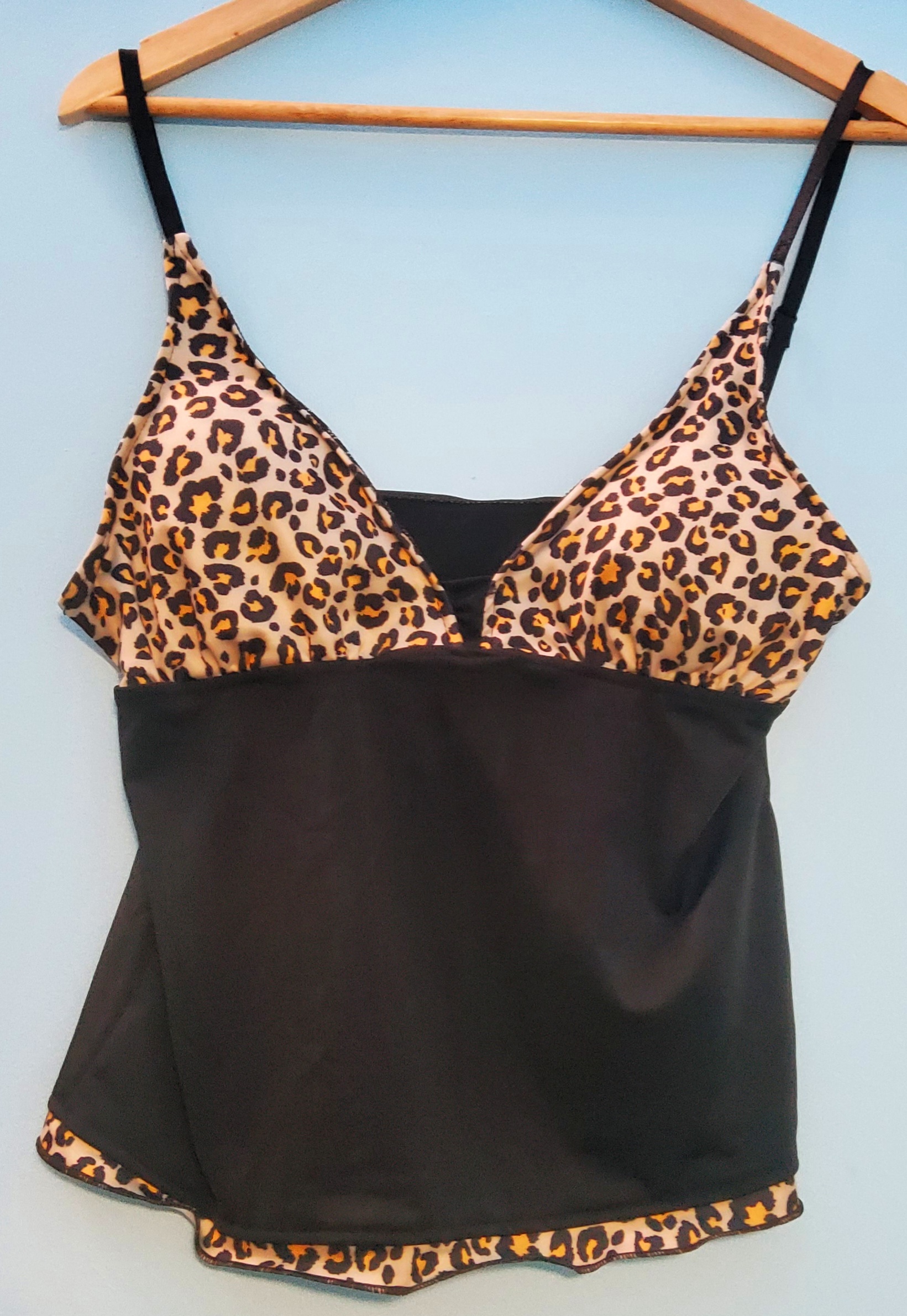 Tankini: Spaghetti adjustable strap, padded bra, animal print bra and lining