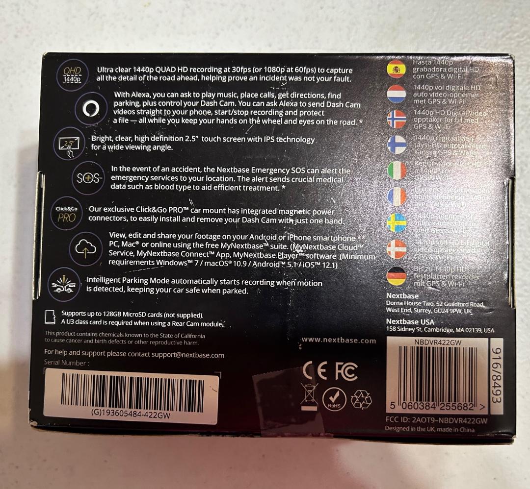 Nextbase Dashcam 222 Dash Cam 1080p HD in Car Camera