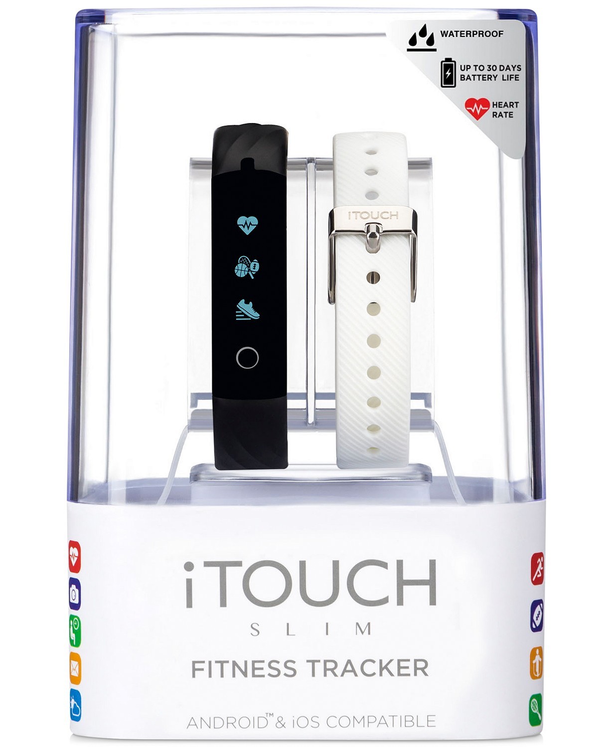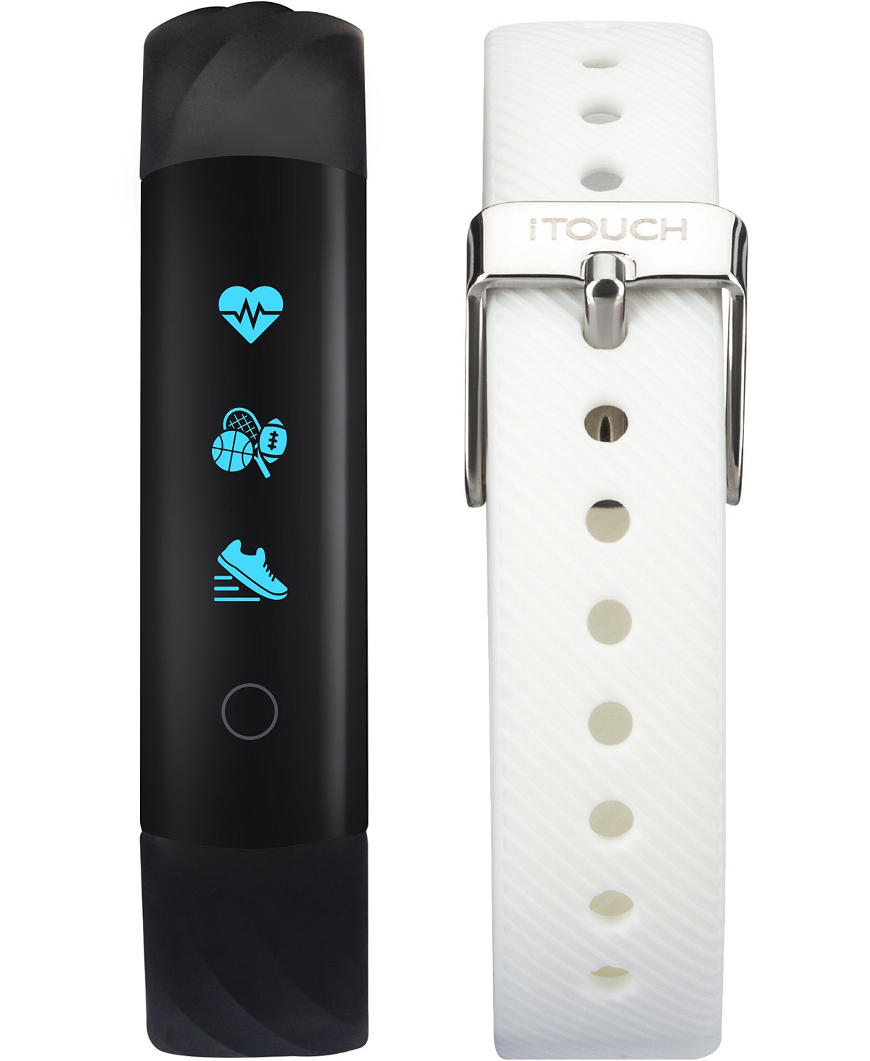 This iTouch Slim activity tracker inspires you to hit your goals and build healthy habits by tracking your calories, activity, sleep, and more. Includes two comfortable silicone straps. Style #ITL8050B08D-G03