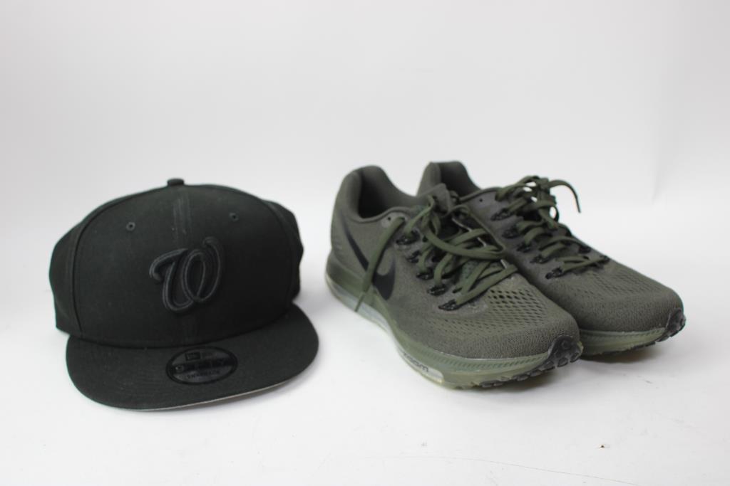 Nike Size 7.5 Running Shoes, 9FIFTY Snapback Hat, And Black Jacket, 3 Pieces
