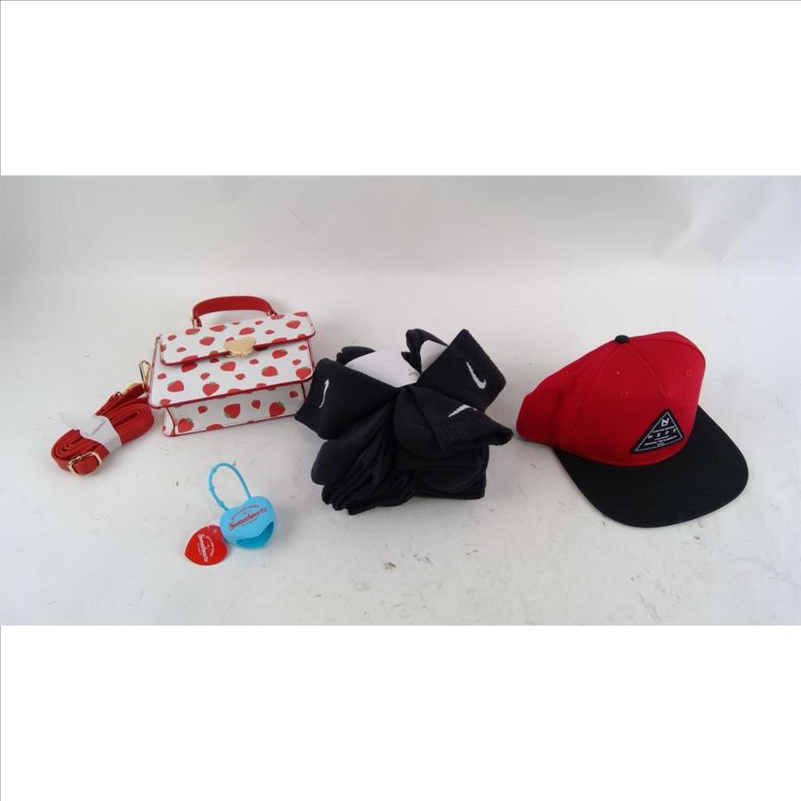 Get a great deal with this online auction presented by PropertyRoom.com on behalf of a law enforcement or public agency client. - Nike socks, Blush crush handbag, Neff hat and more