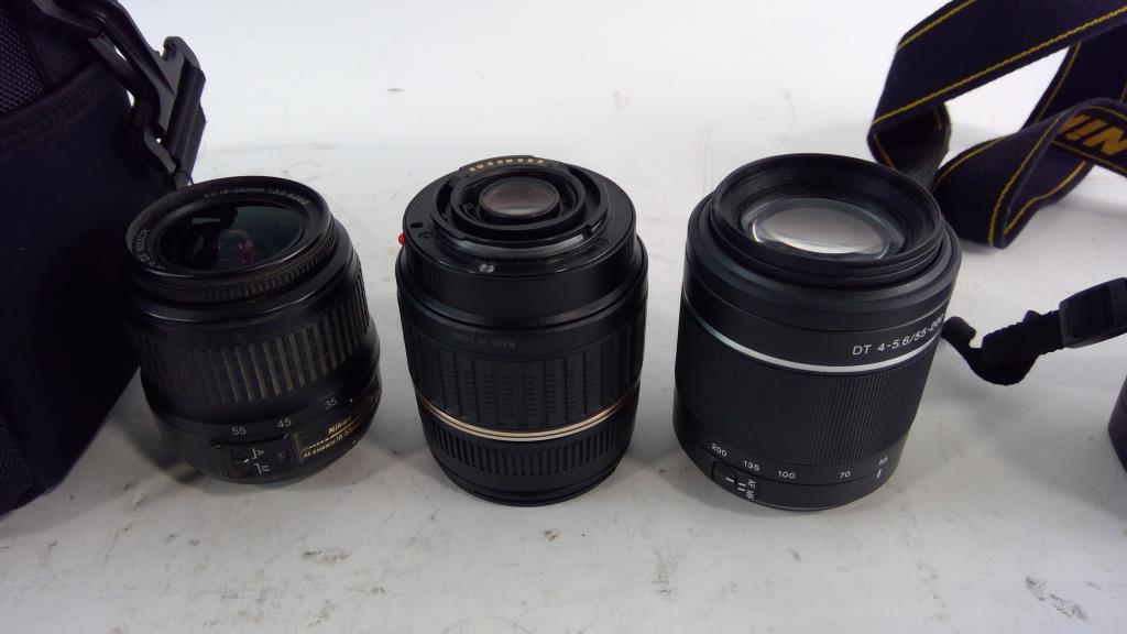 - Accessories: Strap, Tamron 18-200mm lens, Nikon 18-55mm lens