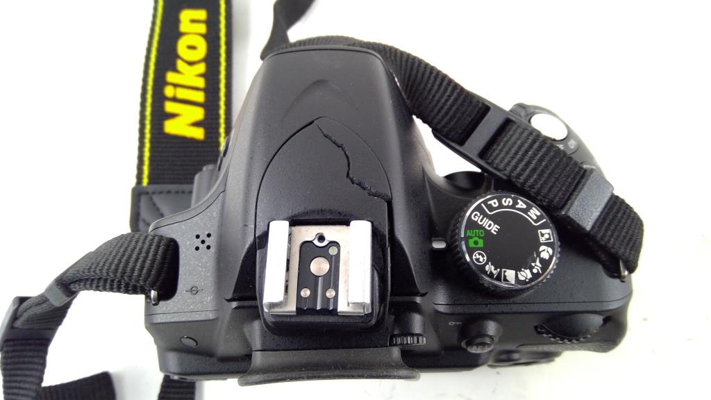 - Physical Condition: Good to fair with scratches, cracked top of camera where flash mount is