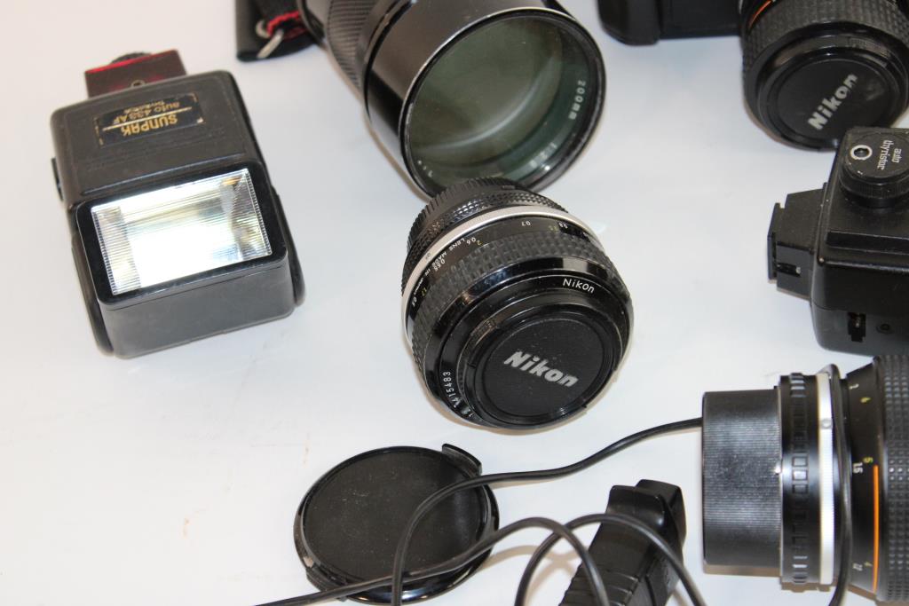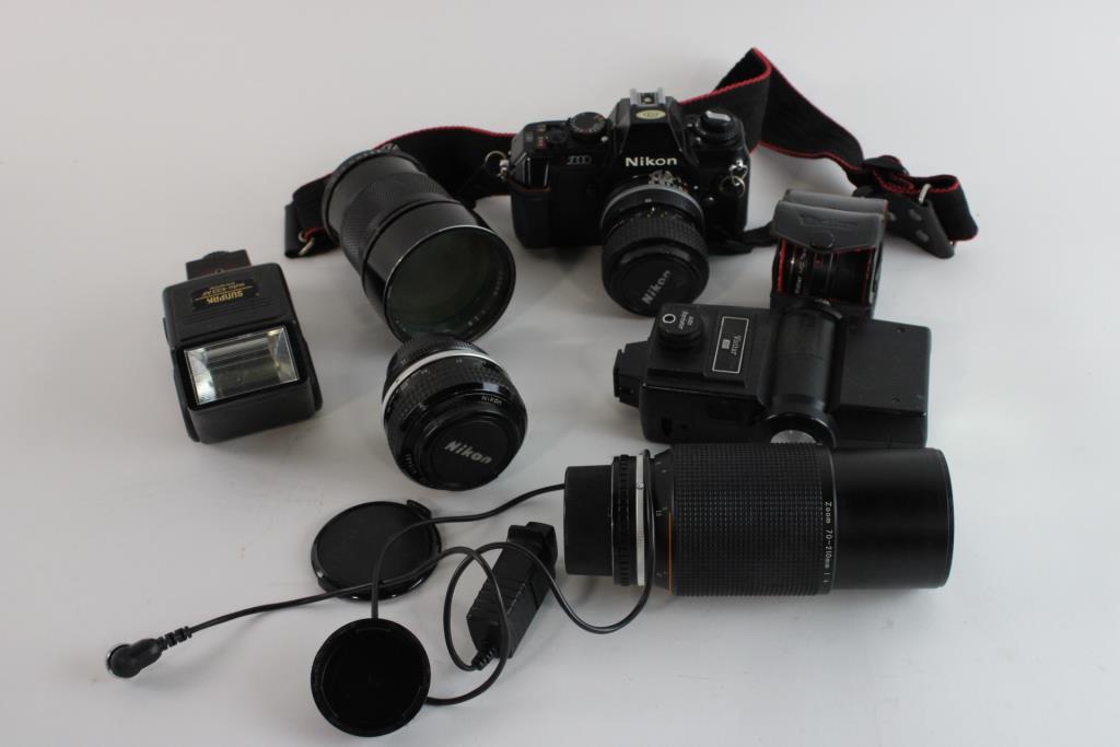 - Accessories: Vivitar & Sunpak flashes, Soligor 200mm lens, Nikon Zoom 70-210mm 1:4 lens & more