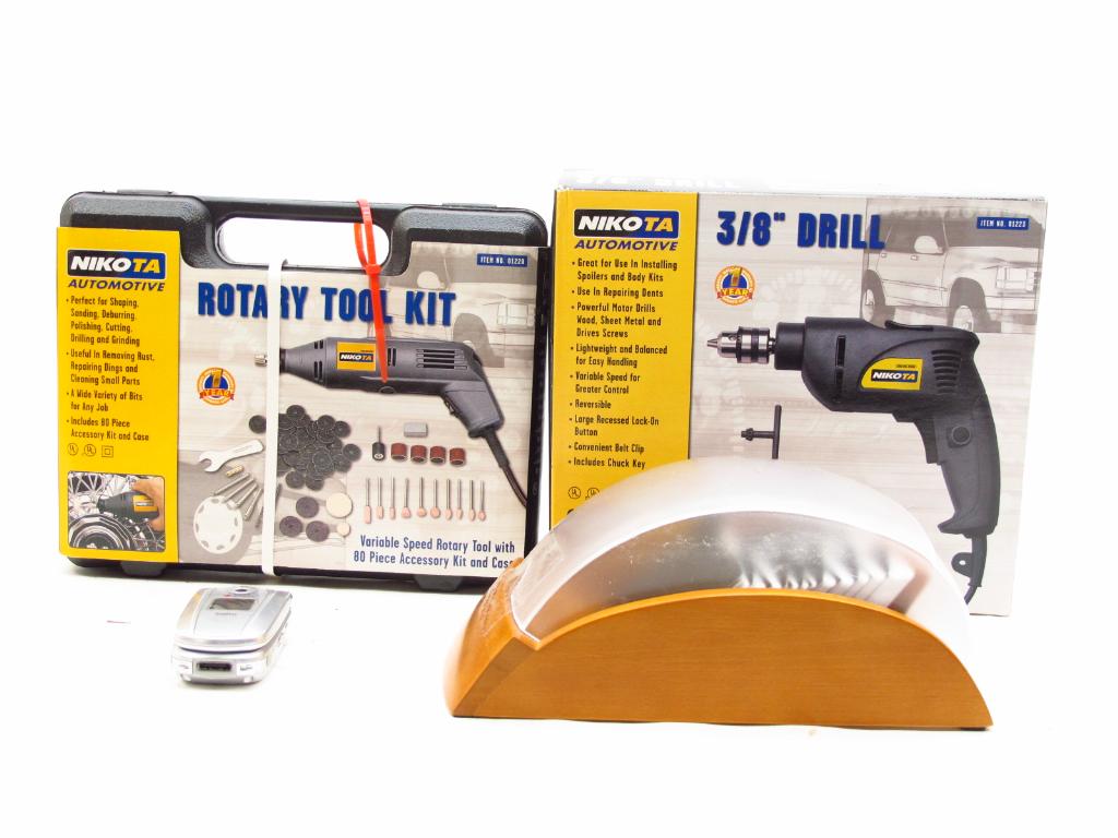 Get a great deal with this online auction for assorted items presented by Property Room on behalf of law enforcement or public agency client. Nikota Rotary Tool Kit Nikota 3/8" Drill Rolodex Sanyo Cell Phone for Sprint Cosmetic Condition: Good-New Testing Results: Items have not been tested.