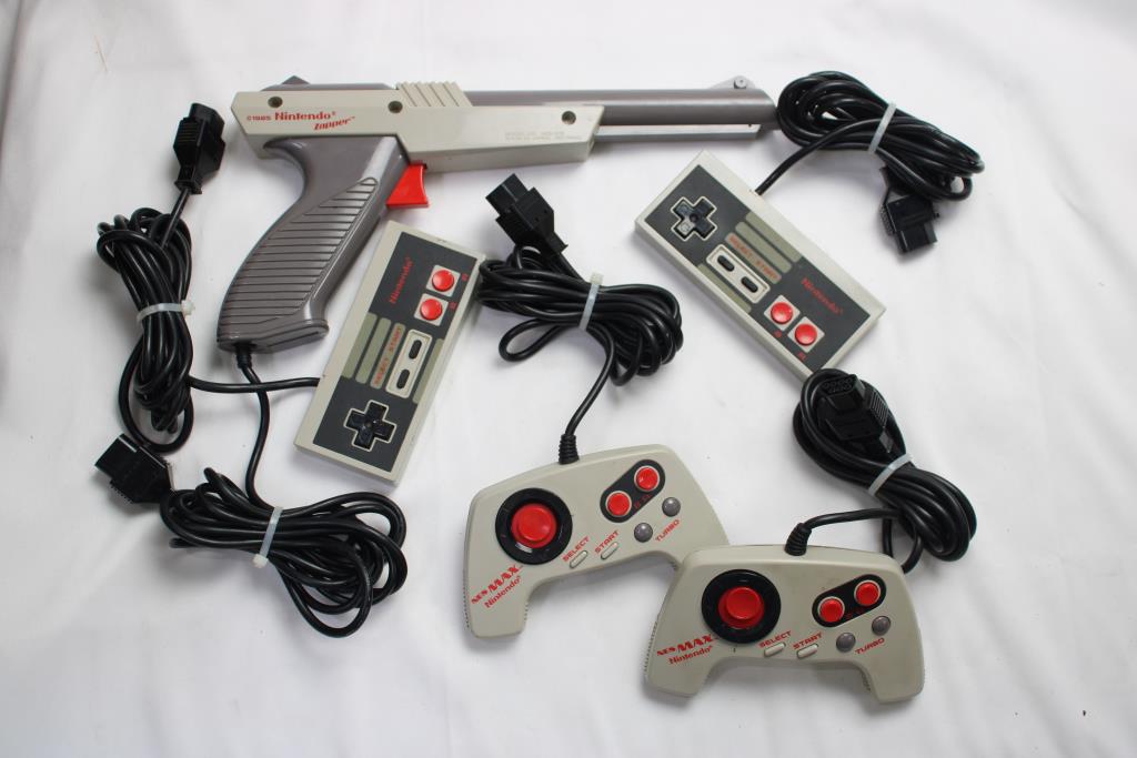 Controllers: Two NES Controllers (Model NES-004), Two NES Max Controllers (Model NES-027), and One Zapper Controller (Model NES-005) Included